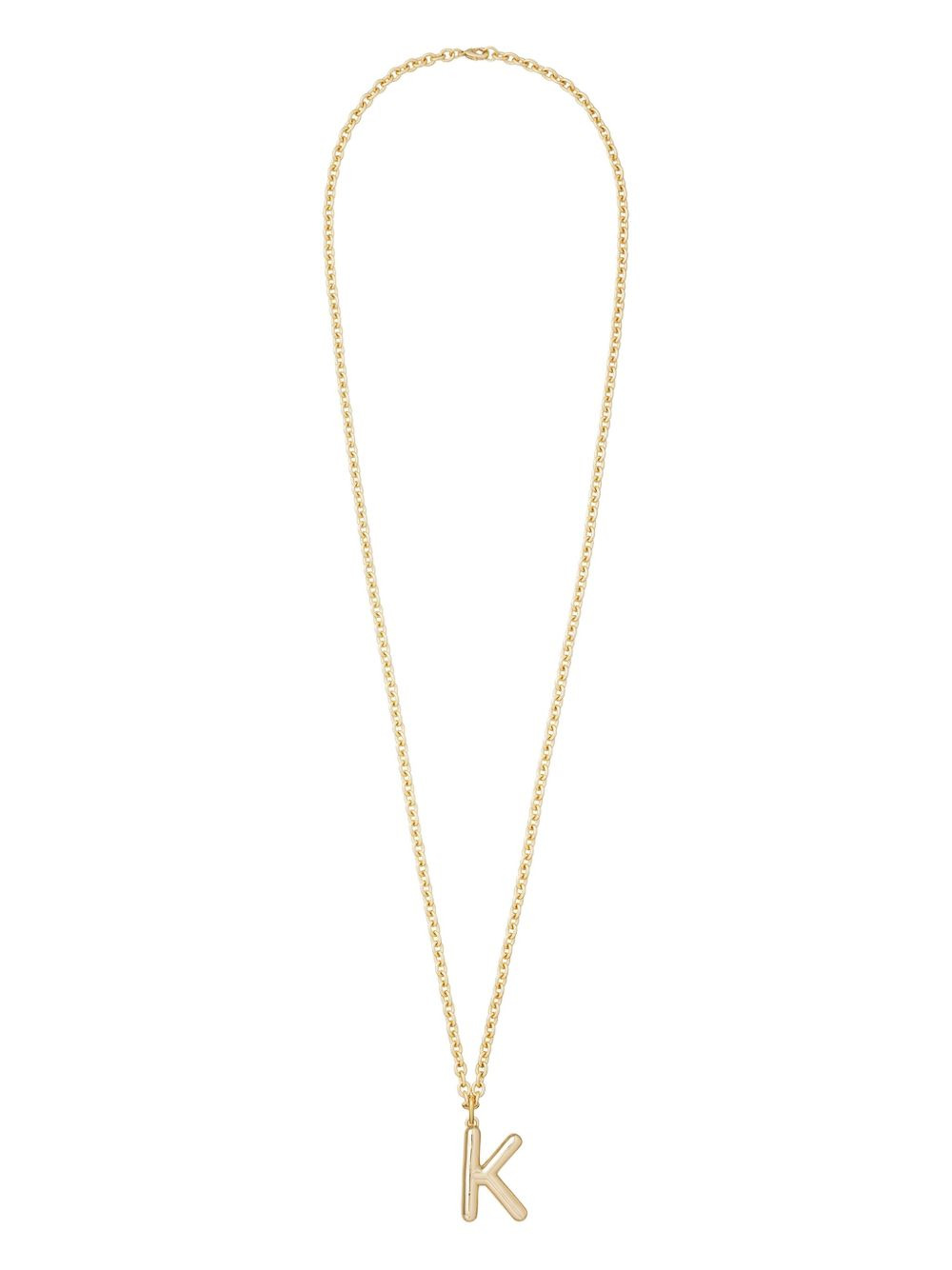 Big Puffy Initial necklace Highlights - Gold-tone - Brass - Chain-link - Initial pendant - Lobster clasp fastening - Engraved logo Imported SIZE & FIT Measurement Length when open 33.85 in(86 cm) PENDANT LENGTH 1.18 in(3 cm) PENDANT WIDTH 1.18 in(3 cm)