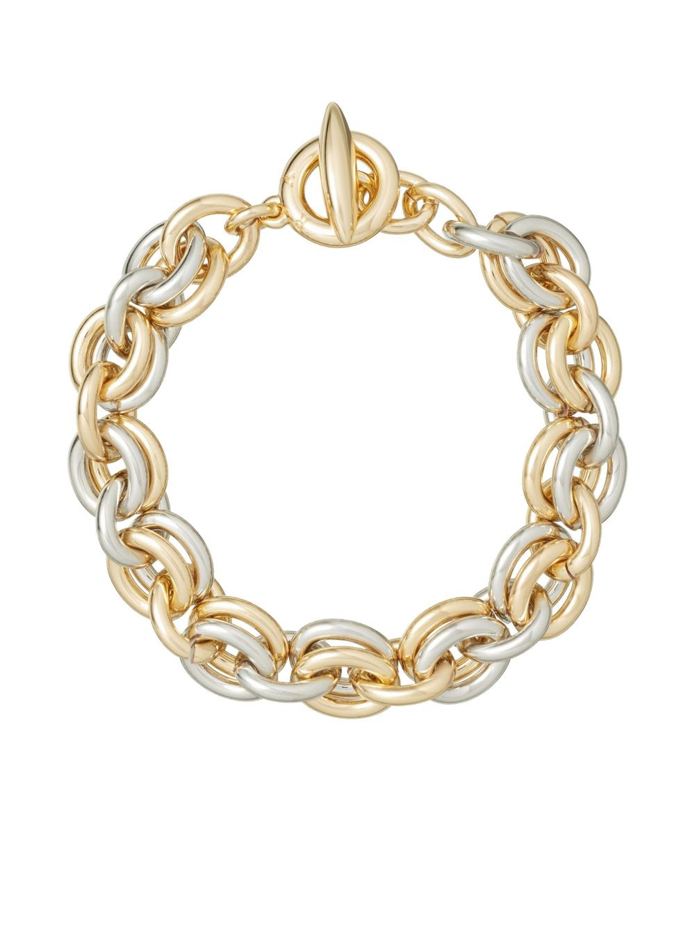 link chain bracelet Highlights - Gold and silver - Interlocking chain - Oval links - Polished finish - Toggle clasp - Two-tone effect Imported