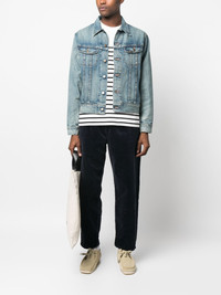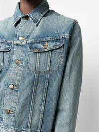 button-down fastening denim jacket light blue cotton classic collar front button fastening long sleeves two chest flap pockets Imported Composition Cotton 100% SIZE & FIT Model measurements Height 6 ft 2 in(1.88 m) Bust/Chest 36.61 in(93 cm) Hips 35.82 in(91 cm) Waist 27.95 in(71 cm) FittingInformation This piece fits true to size. We recommend you get your regular size Cut for a loose fit Made with a mid-weight non-stretch fabric