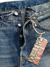 button-fastening jeans Highlights - Navy blue - Cotton - Button fastening - Five pockets - Logo patch - Rolled hem Made in United States Composition Cotton 100% Washing instructions Read Manufacturer Guidelines
