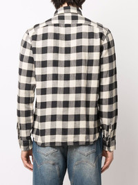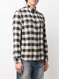 checked long-sleeved shirt black/cream cotton-linen blend check pattern two front flap pockets front button fastening classic collar long sleeves buttoned cuffs straight hem Imported Composition Cotton 90%, Linen/Flax 10% SIZE & FIT Model measurements Height 6 ft 2 in(1.89 m) Bust/Chest 37.79 in(96 cm) Hips 37 in(94 cm) Waist 29.92 in(76 cm) FittingInformation This piece fits true to size. We recommend you get your regular size Cut for a slim fit Made with a mid-weight non-stretch fabric