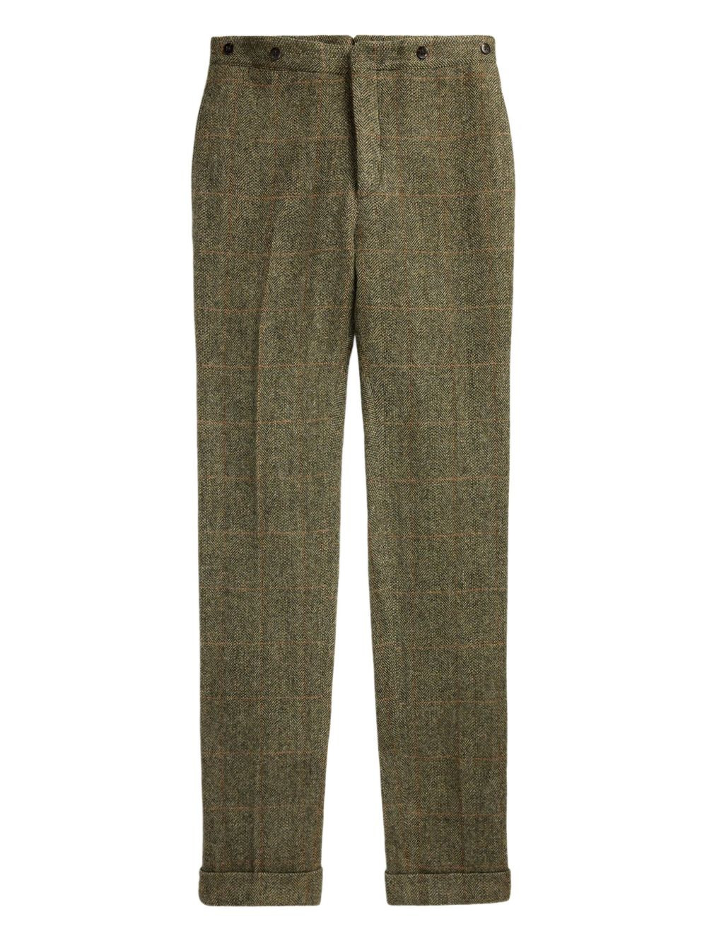 checked tailored trousers Highlights - Olive green - Checked pattern - Concealed front fastening - Two front slit pockets - Two back welt pockets Made in Italy Composition Wool 100% Washing instructions Read Manufacturer Guidelines