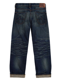 distressed straight-leg jeans Highlights - Dark blue - Faded design - Rolled ankles - Classic five pockets - Leather rear logo patch Made in United States Composition Cotton 100% Washing instructions Read Manufacturer Guidelines