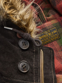 faux fur-trim hooded parka Highlights - Dark brown - Faux-fur trim - Four front pockets - Plaid-check lining - Button and zip fastening - Hooded design Imported Composition Suede 100% Washing instructions Read Manufacturer Guidelines