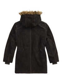 Faux-Fur-Trim Suede Parka