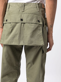 Herringbone Field cargo trousers Highlights - Olive green - Cotton - Herringbone pattern - Garment dyed - Belt loops - Button fly fastening - Straight leg - Two side cargo pockets - Drawstring hem - Rear button-fastening pocket Imported Composition Cotton 100% SIZE & FIT Model measurements Height 6 ft 2 in(1.88 m) Bust/Chest 31.88 in(81 cm) Hips 35.82 in(91 cm) Waist 27.55 in(70 cm) FittingInformation Designed for a straight-leg, allowing for an unrestricted and comfortable fit over the leg The internal drawstring at the hem allows for fitted preferences at the ankle Made from a midweight non-stretch fabric This piece fits true to size – take your usual size Washing instructions Machine Wash