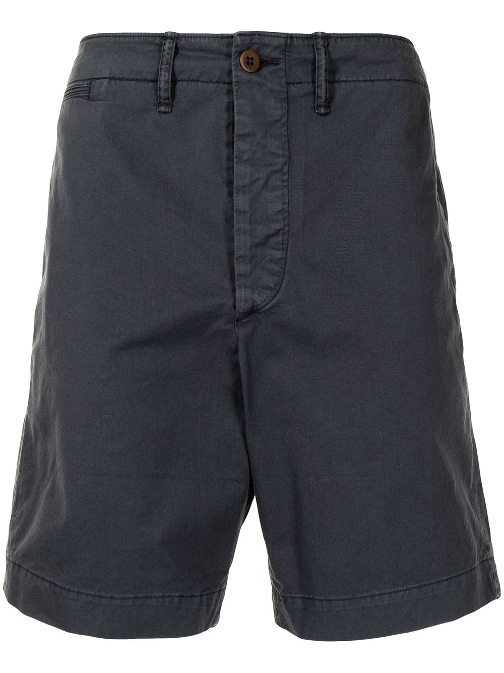 knee-length bermuda shorts navy cotton knee-length front button fastening belt loops two side inset pockets two rear flap pockets Imported Composition Cotton 100% SIZE & FIT Model measurements Height 6 ft 2 in(1.87 m) Bust/Chest 35.43 in(90 cm) Hips 35.43 in(90 cm) Waist 29.13 in(74 cm) FittingInformation This piece fits true to size. We recommend you get your regular size Designed for a slim fit at the waist and loose over the leg Made with a mid-weight non-stretch fabric Washing instructions Machine Wash