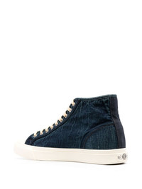 Mayport hi-top sneakers Mayport hi-top sneakers from Ralph Lauren RRL featuring blue, ankle-length, front lace-up fastening and flat rubber sole. Imported Composition Sole: Rubber 100% Outer: Fabric 100% Lining: Fabric 100% SIZE & FIT Measurement HEEL 1.37 in(3.5 cm) HEIGHT 4.13 in(10.5 cm) Sole height 1.18 in(3 cm)