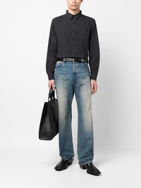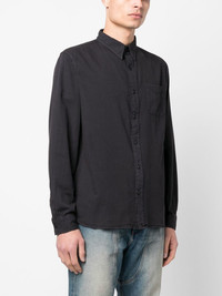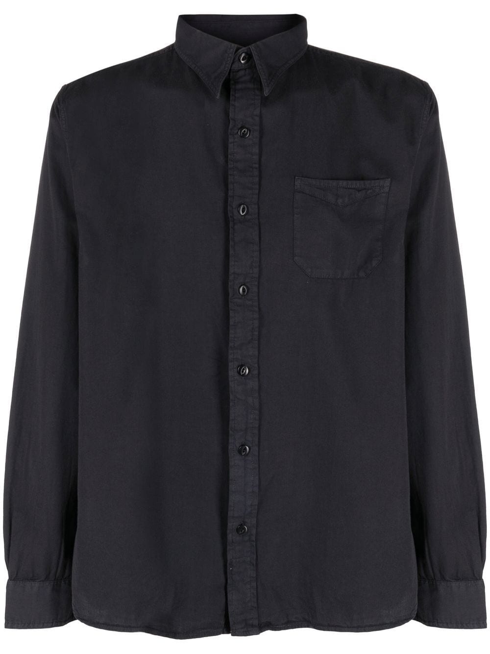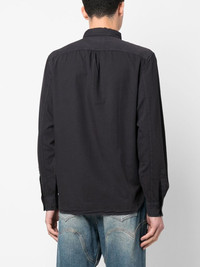 Railman pocket shirt black cotton pointed flat collar front button fastening long sleeves buttoned cuffs curved hem Imported Composition Cotton 100% SIZE & FIT Model measurements Height 6 ft 1 in(1.85 m) Bust/Chest 35.82 in(91 cm) Hips 37.79 in(96 cm) Waist 29.13 in(74 cm) FittingInformation This piece fits true to size. We recommend you get your regular size Cut for a loose fit Made with a mid-weight non-stretch fabric