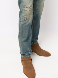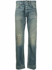 ripped straight-leg jeans pale blue cotton faded effect ripped detailing mid-rise belt loops front button fastening classic five pockets Made in United States Composition Cotton 100% SIZE & FIT Model measurements Height 6 ft 2 in(1.87 m) Bust/Chest 38.18 in(97 cm) Hips 36.61 in(93 cm) Waist 29.13 in(74 cm) FittingInformation This piece fits true to size. We recommend you get your regular size Cut for a slim fit Made with a mid-weight non-stretch fabric