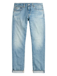 roll-cuff jeans Highlights - Light blue - Five-pocket design - Belt loop waistband - Rolled cuffs - Brand patch at rear Made in United States Composition Recycled Cotton 100% Washing instructions Read Manufacturer Guidelines