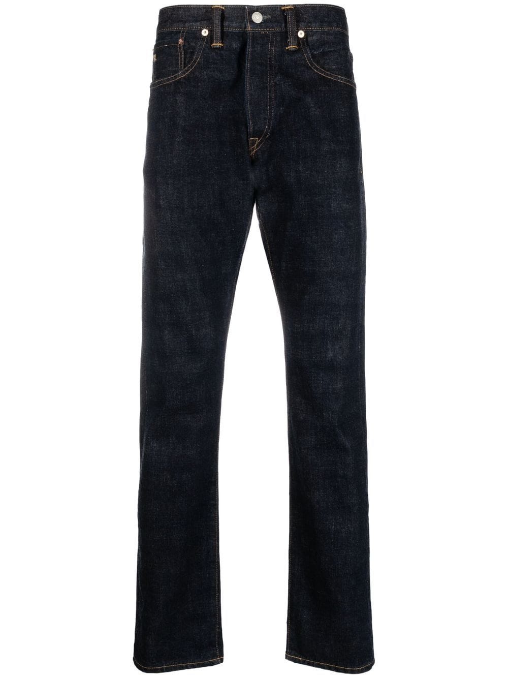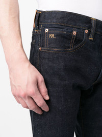 slim-cut five-pocket jeans indigo blue cotton denim dark wash logo patch to the rear slim cut mid-rise classic five pockets concealed fly and button fastening belt loops Made in United States Composition Cotton 100% SIZE & FIT Model measurements Height 6 ft 2 in(1.88 m) Bust/Chest 36.22 in(92 cm) Hips 36.61 in(93 cm) Waist 29.52 in(75 cm) FittingInformation This piece fits true to size. We recommend you get your regular size Cut for a slim fit Made with a mid-weight non-stretch fabric Washing instructions Machine Wash