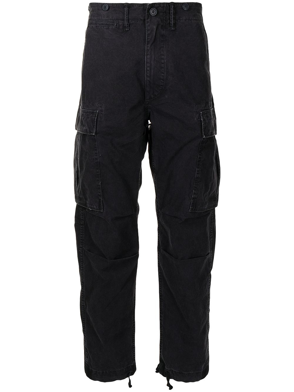 straight-leg cargo trousers Highlights - Black - Cotton - Front button fastening - Belt loops - Front flap pockets - Two rear flap pockets Imported Composition Cotton 100% SIZE & FIT Model measurements Height 6 ft 0 in(1.84 m) Bust/Chest 35.43 in(90 cm) Hips 35.82 in(91 cm) Waist 28.74 in(73 cm) FittingInformation This piece fits true to size. We recommend you get your regular size Cut for a relaxed fit Made with a mid-weight fabric