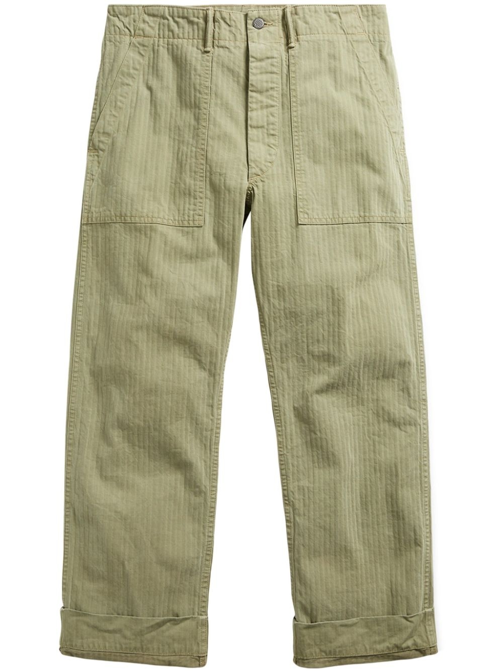 striped straight-leg cotton trousers Highlights - Brewster green - Cotton - Vertical stripe pattern - Mid-rise - Belt loops - Concealed fly and button fastening - Two side slit pockets - Two rear flap pockets - Turn-up cuffs Imported Composition Cotton 100%