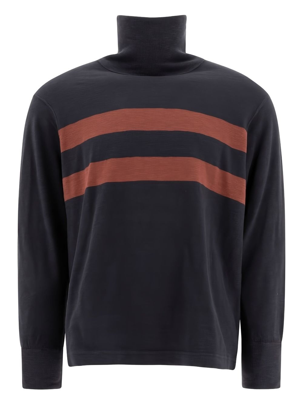 turtleneck stripe cotton sweatshirt Highlights - Dark blue - Turtleneck neck - Long sleeves - Horizontal stripes - Ribbed cuffs Imported Composition Cotton 100% Washing instructions Read Manufacturer Guidelines