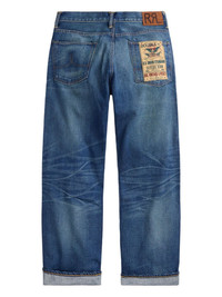wide-leg jeans Highlights - Blue - Front button and zip fastening - Classic five pockets - Belt loops - Wide-leg - Rear logo patch Made in United States Composition Calf Leather 100%, Cotton 100% Washing instructions Machine Wash