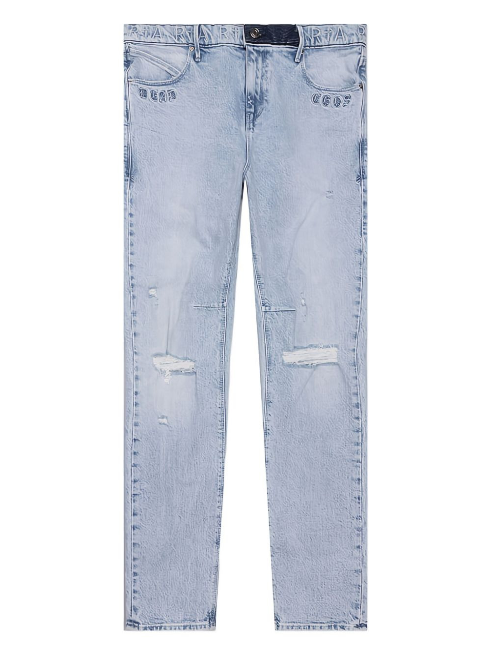 Clayton distressed jeans Highlights - Light blue - Distressed finish - Logo waistband - Belt loops Imported Composition Cotton 98%, Spandex/Elastane 2% Washing instructions Read Manufacturer Guidelines