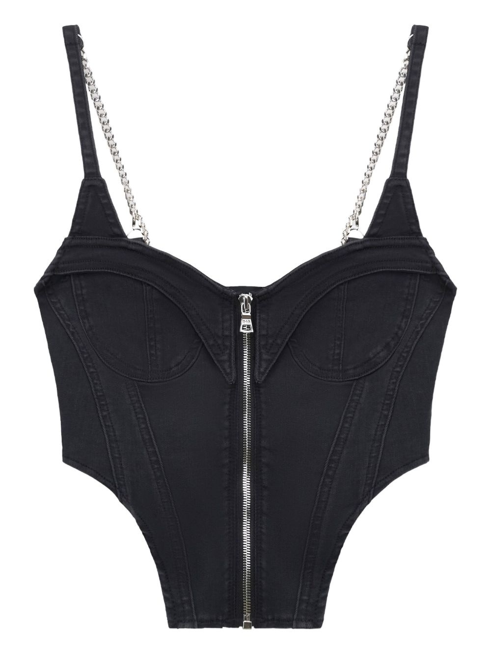 Jazzi top Highlights - Black - Front zip fastening - Applique logo - Sweetheart neck - Two chain-link shoulder straps Imported Composition Cotton 100%