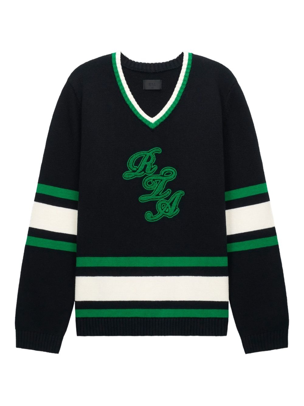 Joshua logo-print sweater Highlights - Black - V-neck - Logo embroidery - Striped sleeves and hem Imported Composition Cotton 60%, Acrylic 40% Washing instructions Hand Wash