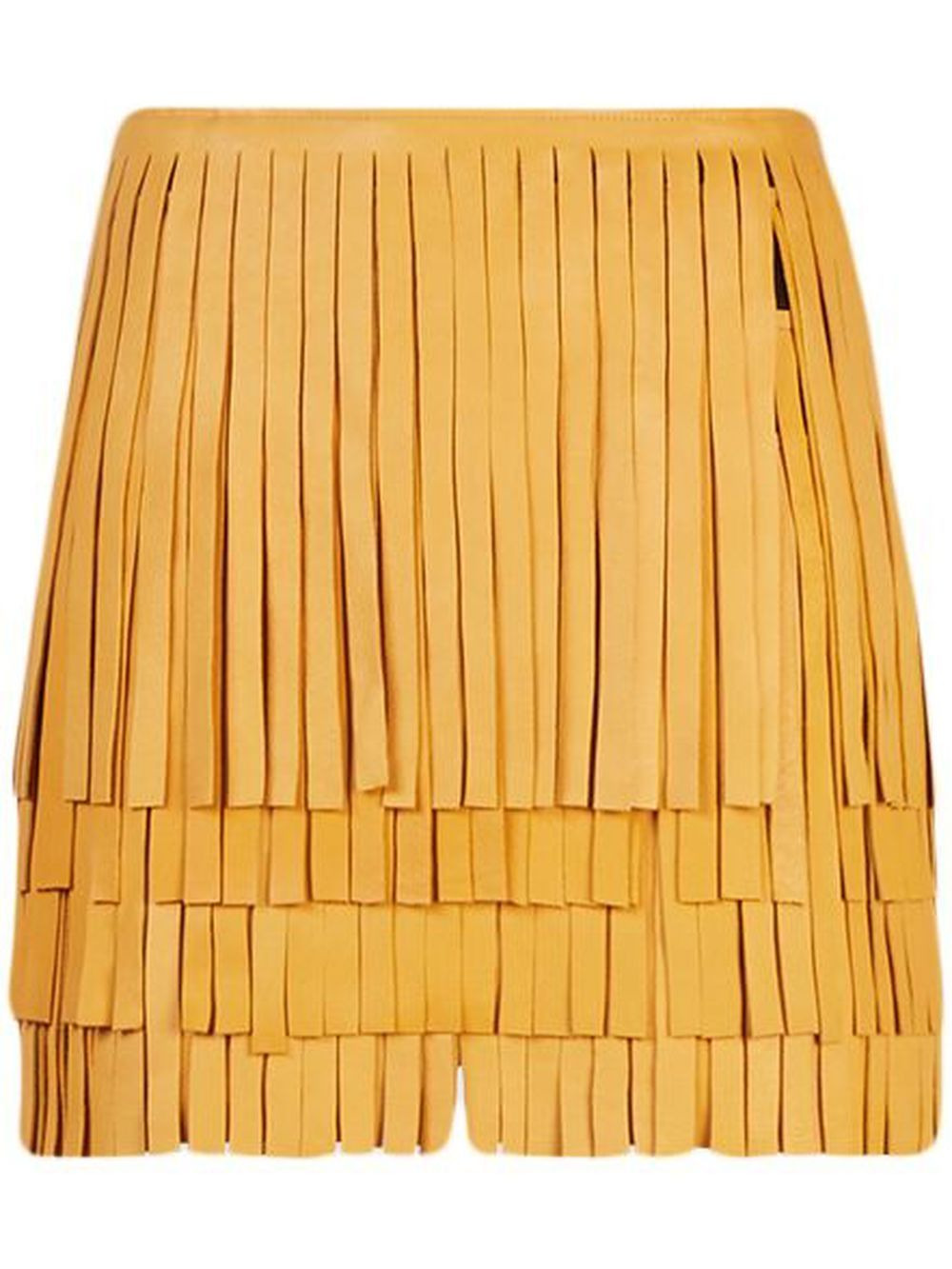Marcela mini skirt dark yellow calf leather fringe detailing slim cut high waist Imported Composition Leather 100% Lining: Nylon 82%, Spandex/Elastane 18% Washing instructions Specialist Cleaning