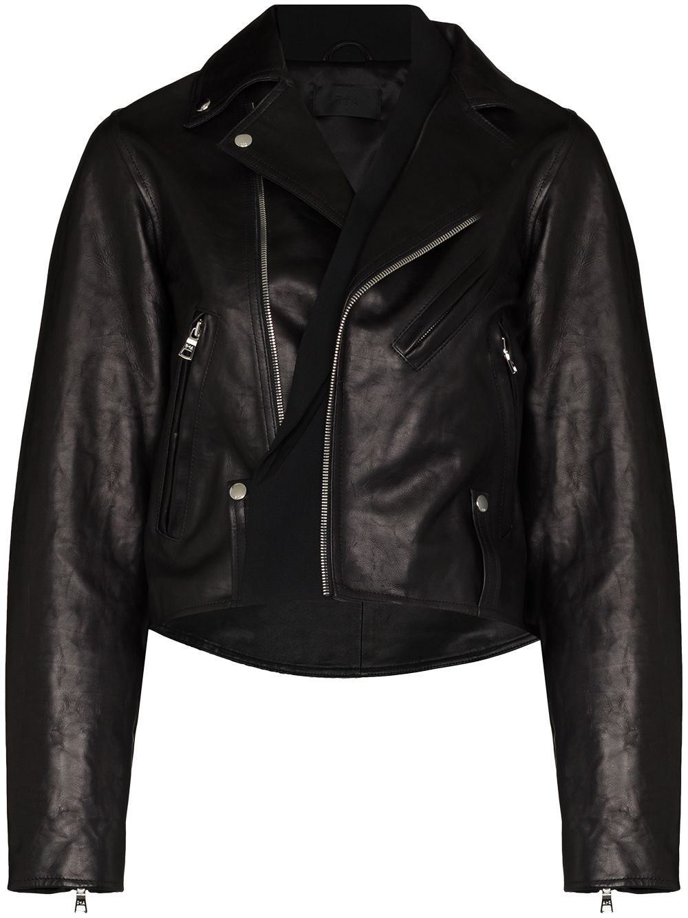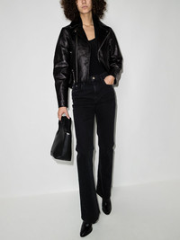 Saige leather biker jacket Imported Composition Outer: Leather 100%, Virgin Wool 100% Lining: Polyester 96%, Spandex/Elastane 4% SIZE & FIT Model measurements Height 5 ft 10 in(1.79 m) Bust/Chest 31.88 in(81 cm) Hips 35.43 in(90 cm) Waist 23.62 in(60 cm) FittingInformation This piece fits true to size. We recommend you get your regular size Cut for a loose fit Made with a mid-weight fabric