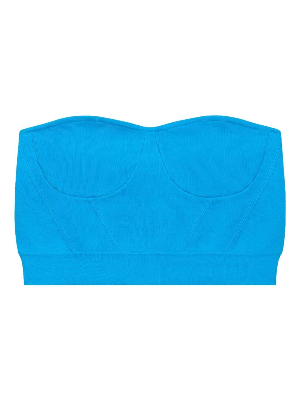 strapless top Highlights - Cyan blue - Embroidered logo - Sweetheart neck - Elasticated underband Imported Composition Cotton 84%, Spandex/Elastane 16%