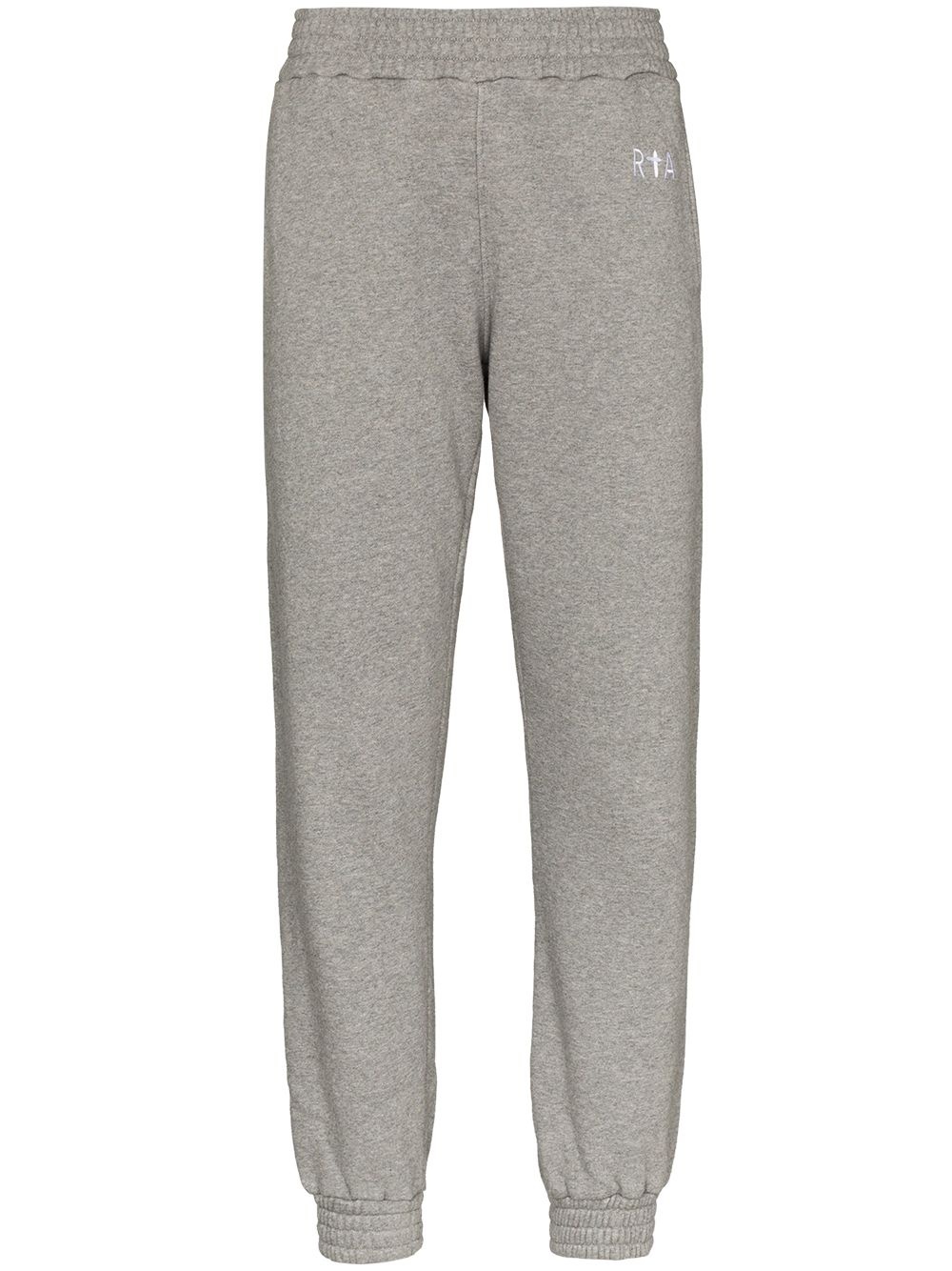 Sydney straight-leg track pants Take your sweats to the street. In a straight-leg silhouette and grey hue, this pair of track pants from Rta effortlessly transitions you from your sofa, to the gym, to front row of Milan Fashion Week. Smile, you're on camera. Highlights - Grey - Cotton - Logo print at the leg - High waist - Elasticated waistband - Straight leg - Ribbed cuffs - Ankle length Imported Composition Cotton 100% SIZE & FIT Model measurements Height 5 ft 9 in(1.74 m) Bust/Chest 31.49 in(80 cm) Hips 37.4 in(95 cm) Waist 25.19 in(64 cm) FittingInformation This piece fits true to size. We recommend you get your regular size Designed to be loose over the leg with a fitted waist and hem Made with a mid-weight fabric Washing instructions Machine Wash