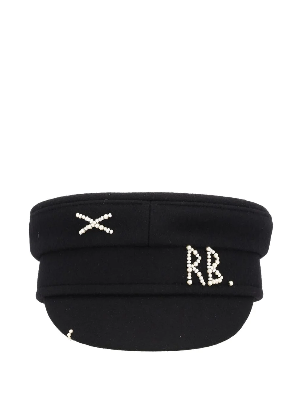 beaded beret hat Highlights - Black - Beaded detailing - Flat brim Imported Composition Wool 100%