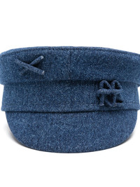 denim baker boy cap Highlights - Indigo blue - Cotton - Denim - Round crown - Embroidered logo to the front - Curved peak - Cotton lining Imported Composition Outer: Cotton 100% Lining: Cotton 100% SIZE & FIT Measurement BRIM 1.96 in(5 cm) CIRCUMFERENCE 19.68 in(50 cm) Washing instructions Dry Clean Only