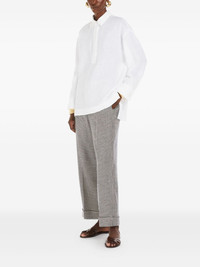 Adelfi checked wide-leg trousers Highlights - Navy blue - Checked pattern - Hook and zip front fastening - Belt loops - Side slit pockets Made in Italy Composition Linen/Flax 71%, Cotton 24%, Polyester 3%, Acrylic 1%, Elastane 1%
