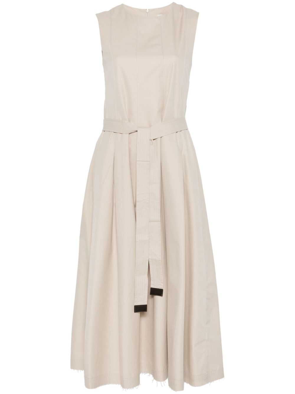 Amina midi dress Highlights - Beige - Rear zip fastening - Detachable waist belt - Two side slit pockets - Pleated skirt Imported Composition Cotton 100% SIZE & FIT Model measurements Height 5 ft 10 in(1.79 m) Bust/Chest 31.88 in(81 cm) Hips 35.43 in(90 cm) Waist 23.62 in(60 cm) Measurement HIPS 42.51 in(108 cm) LENGTH 50.39 in(128 cm) WAIST 34.64 in(88 cm) FittingInformation Designed for a close fit at the chest and waist with a loose fit at the hip The adjustable tie waist gives a more adaptable and personalised fit Made from a midweight non-stretch fabric