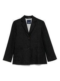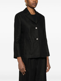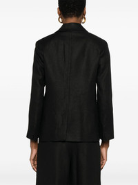 Arrigo blazer Highlights - Black - Butterfly fastening - Shoulder pads - Two side patch pockets - American rear vent Made in Italy Composition Lining: Cotton 92%, Polyamide 8% Outer: Linen/Flax 100% SIZE & FIT Model measurements Height 5 ft 11 in(1.8 m) Bust/Chest 31.49 in(80 cm) Hips 36.61 in(93 cm) Waist 24.4 in(62 cm) FittingInformation Designed for a slim fit that sits just away from the body offering a close yet comfortable fit The internal shoulder pads offer a structured shape Made from a midweight non-stretch fabric