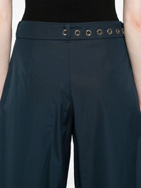 Assiro wide-leg trousers Highlights - Navy blue - Cotton - Poplin texture - Belt loops - Pleat detailing - Two diagonal pockets to the sides - Dart detailing - Wide leg - Cropped leg - Unlined - Gold-tone hardware - Concealed front button, hook and zip fastening - Front buckle fastening Made in Italy Composition Cotton 100% SIZE & FIT Model measurements Height 5 ft 9 in(1.75 m) Bust/Chest 34.64 in(88 cm) Hips 36.61 in(93 cm) Waist 26.37 in(67 cm) FittingInformation Designed with a wide-leg cut, these trousers allow for a close fit at the waist and offer a loose and roomy fit over the leg The belt offers adjustability for fitted preferences Made from a lightweight non-stretch fabric This piece fits true to size – take your usual size