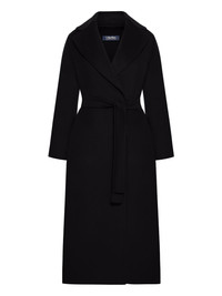 belted wool coat Highlights - Black - Wool - Peak lapels - Belted waist - Long sleeves Made in Italy Composition Virgin Wool 100% Washing instructions Read Manufacturer Guidelines