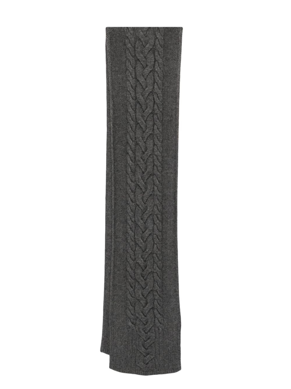 cable-knit rib-trim scarf Highlights - Dark grey - Wool-cashmere blend - Rectangle body - Cable knit - Ribbed trim Imported Composition Wool 80%, Cashmere 20% SIZE & FIT Measurement LENGTH 82.67 in(210 cm) WIDTH 8.66 in(22 cm)