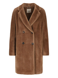 double-breasted wool coat Highlights - Brown - Double-breasted - Button fastening - Notched lapels - Long sleeves Imported Composition Acetate 69%, Alpaca 62%, Virgin Wool 38%, Cupro 31% Washing instructions Read Manufacturer Guidelines