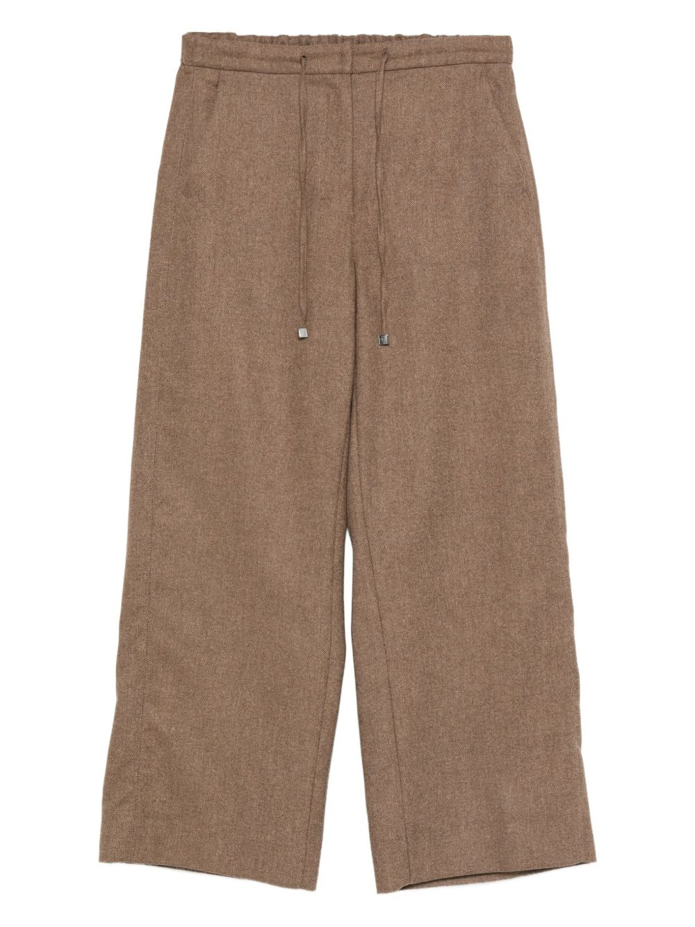 drawstring trousers Highlights - Brown - Drawstring fastening - Straight leg - Wool-cashmere blend Made in Italy Composition Virgin Wool 95%, Cashmere 5% SIZE & FIT Model measurements Height 5 ft 10 in(1.77 m) Bust/Chest 33.07 in(84 cm) Hips 37 in(94 cm) Waist 24.8 in(63 cm) Washing instructions Dry Clean Only