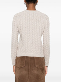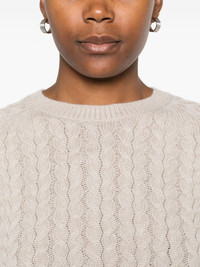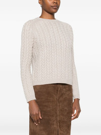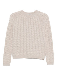 ELIANE cable-knit sweater Highlights - Beige - Cable knit - Round neck - Long sleeves - Ribbed cuffs Imported Composition Wool 80%, Cashmere 20% SIZE & FIT Model measurements Height 5 ft 11 in(1.8 m) Bust/Chest 31.49 in(80 cm) Hips 36.61 in(93 cm) Waist 24.4 in(62 cm) Washing instructions Hand Wash