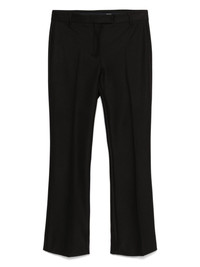 Fatina trousers Highlights - Black - Concealed front fastening - Belt loops - Dart detailing - Pressed crease Made in Italy Composition Viscose 47%, Cotton 45%, Elastane 8% SIZE & FIT Model measurements Height 5 ft 11 in(1.8 m) Bust/Chest 32.67 in(83 cm) Hips 36.22 in(92 cm) Waist 24.4 in(62 cm) FittingInformation Designed with a flared hem, these trousers allow for a close fit at the waist with a slim fit over the leg and widening towards the hem Made from a midweight stretch fabric, this piece offers elasticity and flexibility when worn