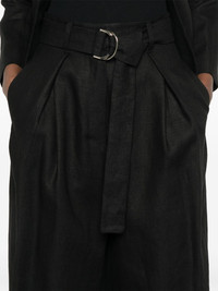 Jane trousers Highlights - Black - Concealed front fastening - Belted waist - Two side slit pockets - Two rear button-fastening jetted pockets Made in Italy Composition Linen/Flax 100% SIZE & FIT Model measurements Height 5 ft 11 in(1.8 m) Bust/Chest 31.49 in(80 cm) Hips 36.61 in(93 cm) Waist 24.4 in(62 cm) FittingInformation Designed with a wide-leg cut, these trousers allow for a close fit at the waist and offer a loose and roomy fit over the leg Made from a midweight non-stretch fabric