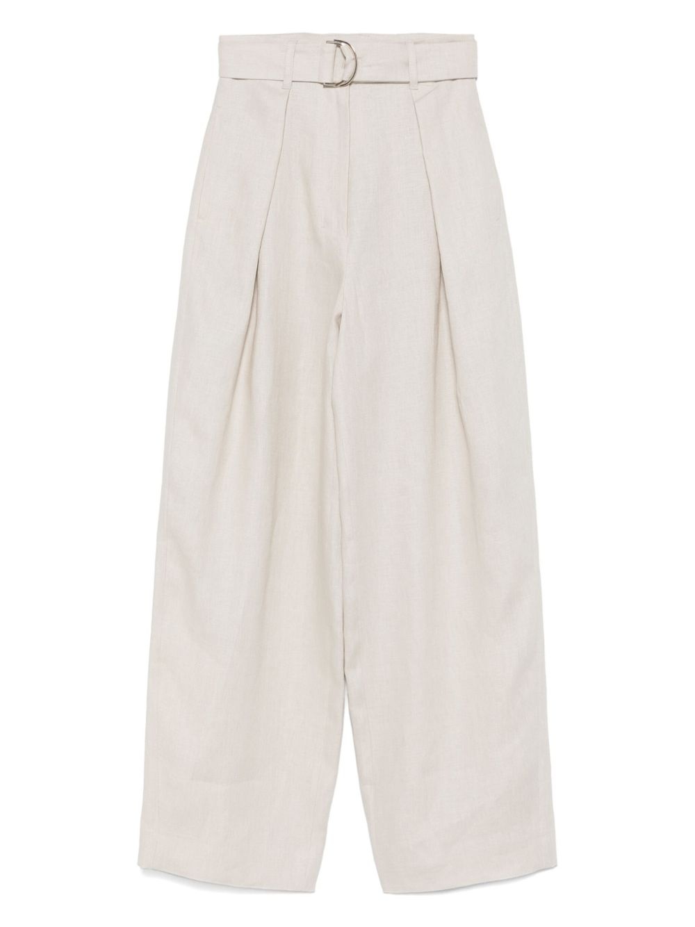 Jane trousers Highlights - Ecru - Concealed front button, hook and zip fastening - Detachable waist belt - Two side slit pockets - Two rear button-fastening jetted pockets Imported Composition Linen/Flax 100% SIZE & FIT Model measurements Height 5 ft 10 in(1.78 m) Bust/Chest 32.67 in(83 cm) Hips 35.43 in(90 cm) Waist 23.22 in(59 cm) FittingInformation Designed with a wide-leg cut, these trousers allow for a close fit at the waist and offer a loose and roomy fit over the leg The belt offers adjustability for fitted preferences Made from a midweight non-stretch fabric