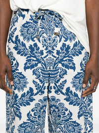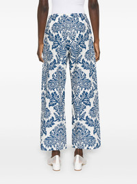Merano trousers Highlights - Concealed front button, hook and zip fastening - Drawstring waist - Rear elasticated waistband - Two side slash pockets - All-over floral print Imported Composition Cotton 100% SIZE & FIT Model measurements Height 5 ft 10 in(1.77 m) Bust/Chest 32.28 in(82 cm) Hips 35.03 in(89 cm) Waist 25.19 in(64 cm) FittingInformation Designed with a wide-leg cut, these trousers allow for a close fit at the waist and offer a loose and roomy fit over the leg Adjust this piece’s waistband to your preference using the drawstring Made from a midweight non-stretch fabric