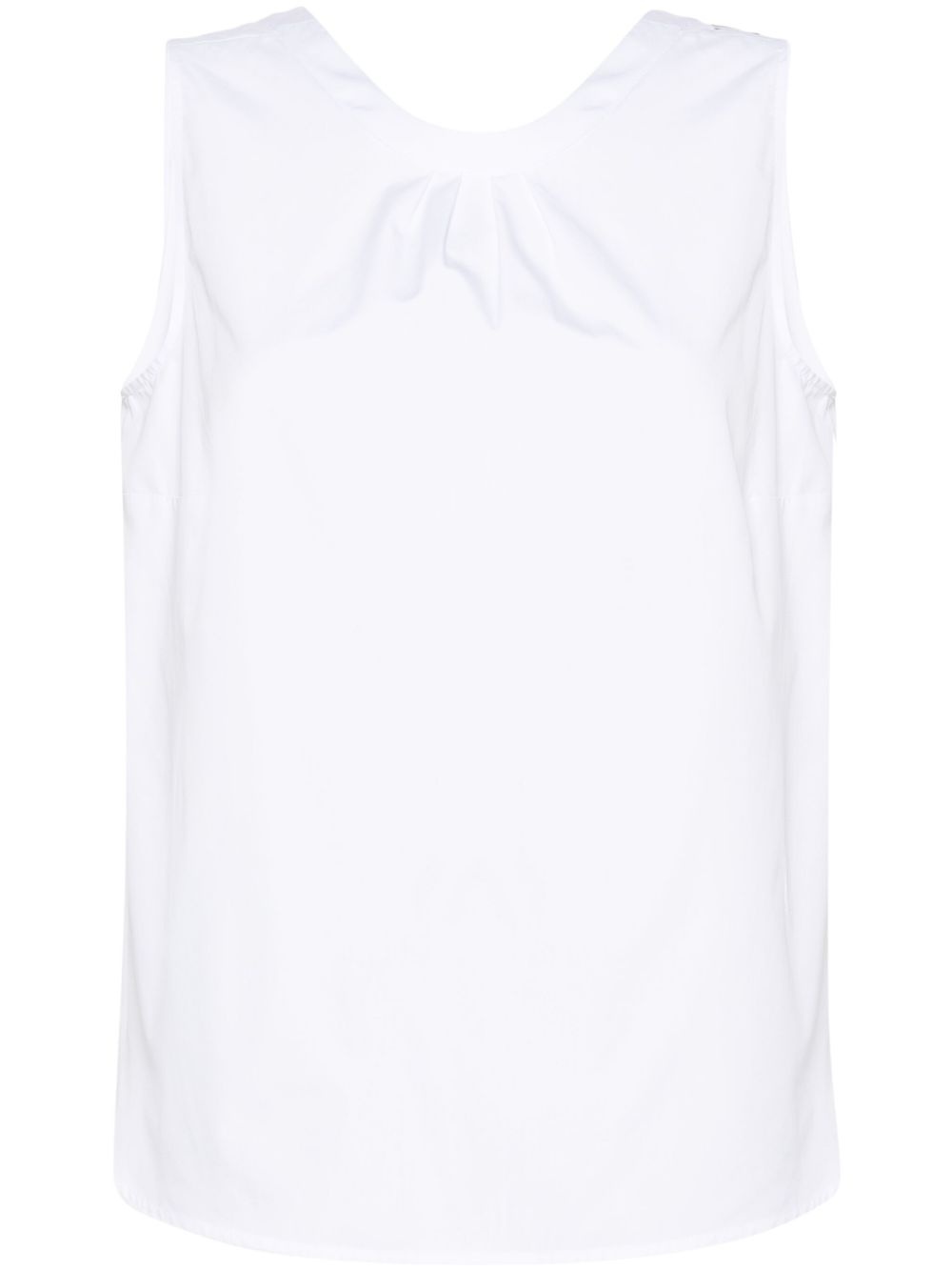 Ofelia poplin top Highlights - White - Cotton - Poplin texture - Round neck - Pleat detailing to the neck - Logo-patch to the shoulder - Sleeveless - Curved hem - Rear tie fastening - Pull-on style Made in Italy Composition Cotton 100% SIZE & FIT Model measurements Height 5 ft 10 in(1.77 m) Bust/Chest 31.88 in(81 cm) Hips 36.22 in(92 cm) Waist 24.01 in(61 cm) FittingInformation Designed to be unstructured, offering a loose fit throughout Made from a lightweight non-stretch fabric This piece fits true to size – take your usual size