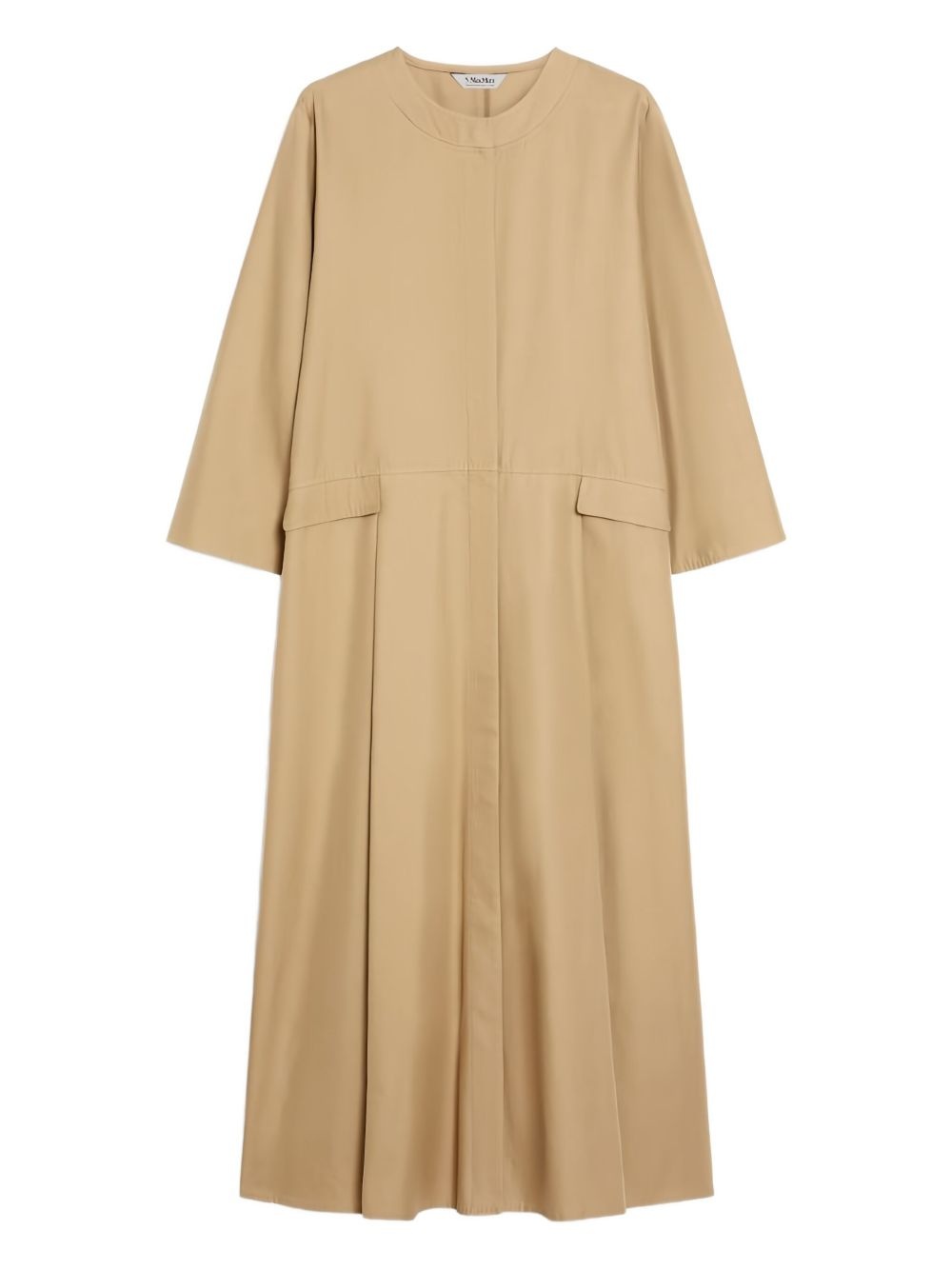pleated maxi dress Highlights - Beige - Round neck - Side pockets - Long sleeves - Front flap pockets Made in Italy Composition Cotton 100% Washing instructions Read Manufacturer Guidelines