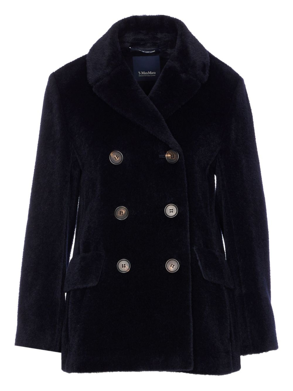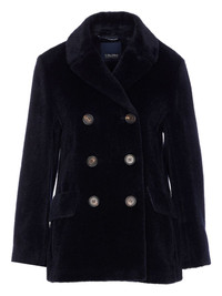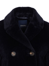 double-breasted faux-fur coat Highlights - Midnight blue - Double-breasted button fastening - Side flap pockets - Long sleeves Imported Composition Alpaca 62%, Virgin Wool 38%