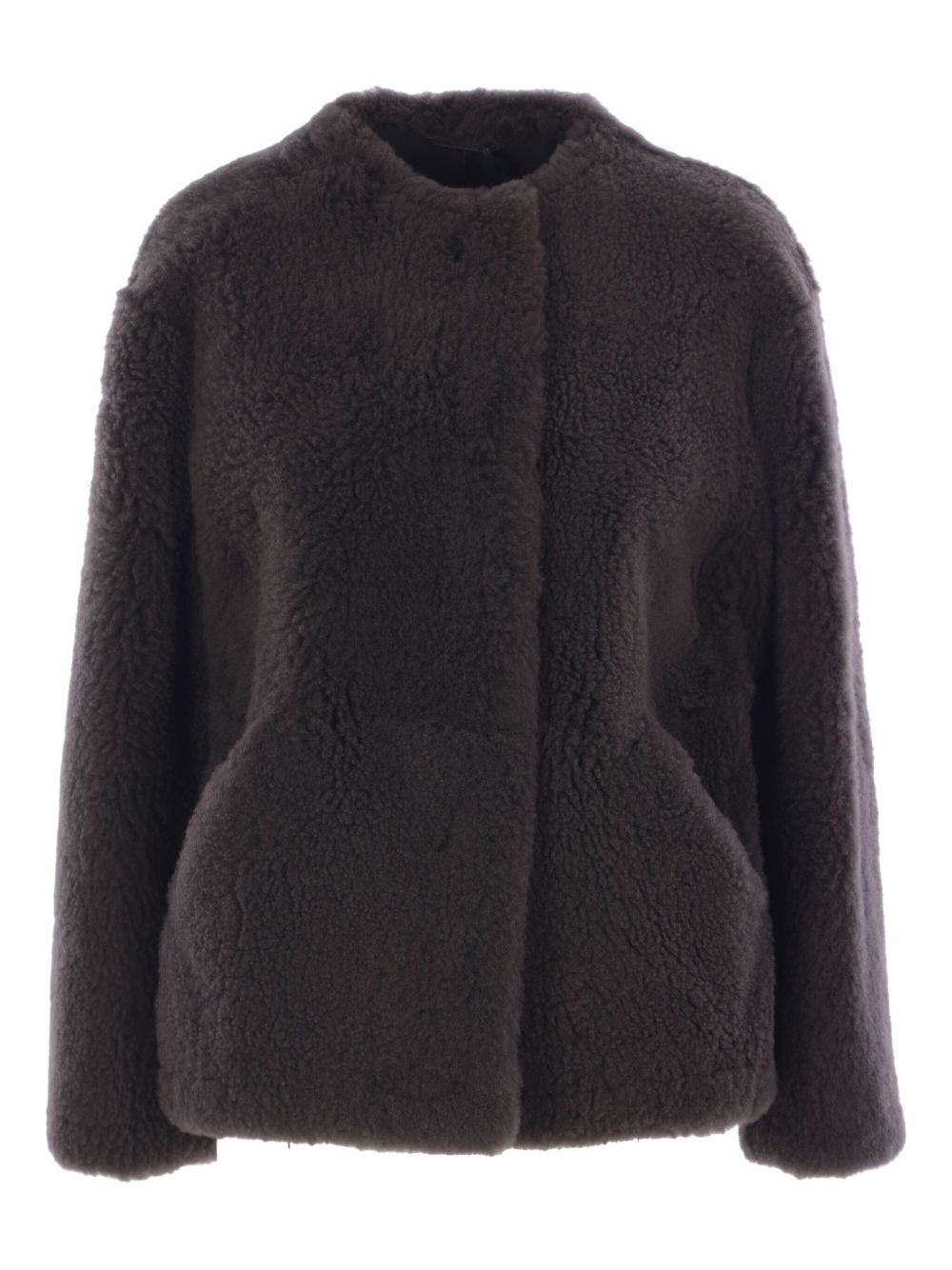 shearling coat Highlights - Dark brown - Concealed front fastening - Round neck - Long sleeves - Straight hem Imported Composition Lamb Shearling 100%