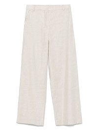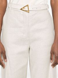 Toby trousers Highlights - Almond beige - Concealed front button, hook and zip fastening - Two diagonal pockets to the sides - Two rear welt pockets - Belt loops Imported Composition Linen/Flax 54%, Modal 43%, Elastane 3% SIZE & FIT Model measurements Height 5 ft 11 in(1.8 m) Bust/Chest 31.49 in(80 cm) Hips 36.61 in(93 cm) Waist 24.4 in(62 cm) FittingInformation Designed with a wide-leg cut, these trousers allow for a close fit at the waist and offer a loose and roomy fit over the leg Cropped in length Made from a midweight non-stretch fabric