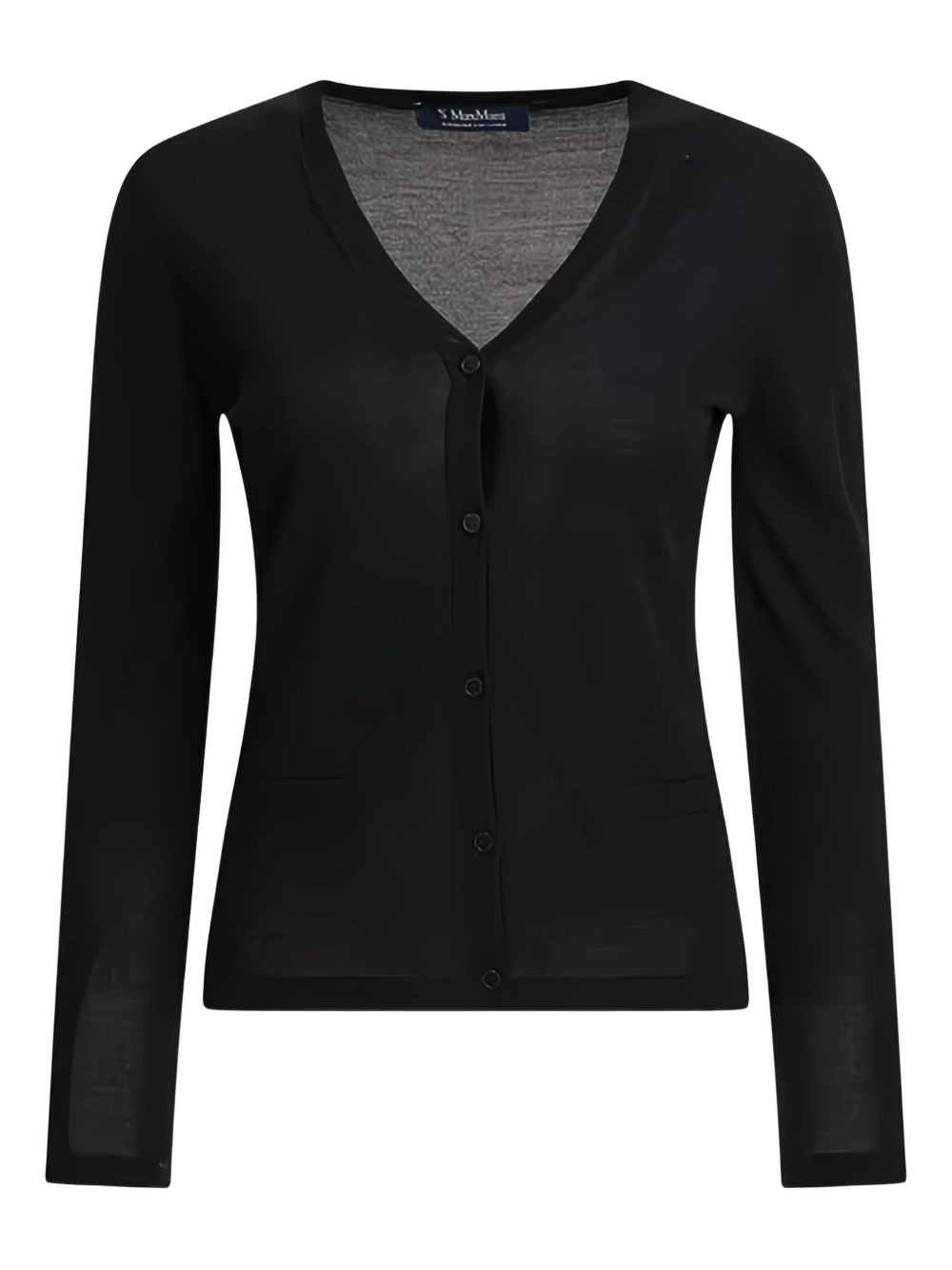 V-neck button cardigan Highlights - Black - V-neck - Button fastening - Long sleeves - Patch pockets - Wool Imported Composition Wool 100% Washing instructions Read Manufacturer Guidelines