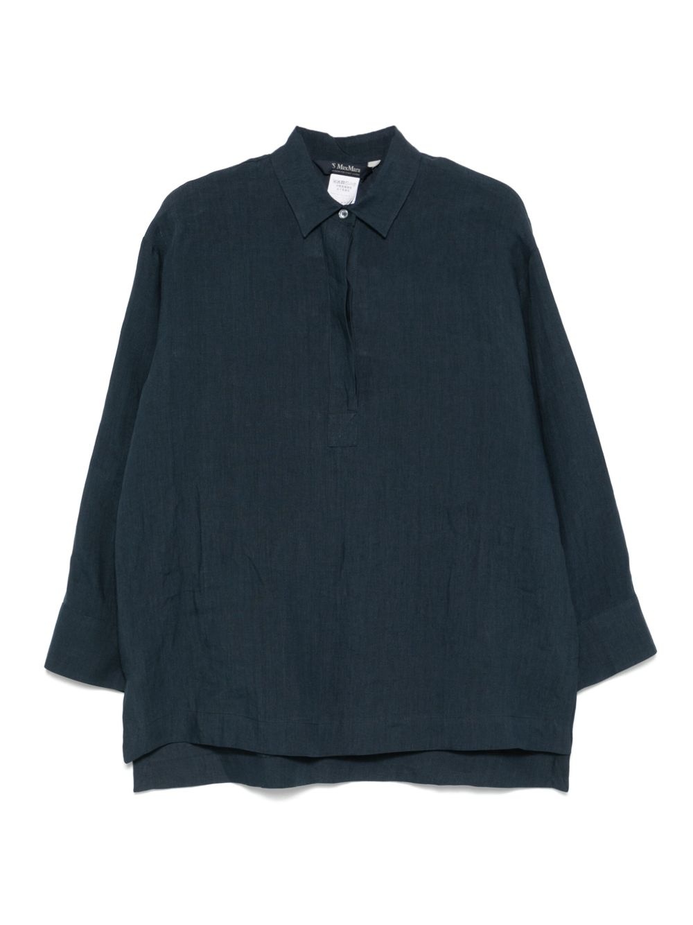 Varese polo top Highlights - Navy blue - Short front button fastening - Buttoned-cuff sleeves - Side slits - High-low hem Imported Composition Linen/Flax 100% SIZE & FIT Model measurements Height 5 ft 9 in(1.75 m) Bust/Chest 31.88 in(81 cm) Hips 34.64 in(88 cm) Waist 24.01 in(61 cm) FittingInformation Designed to be unstructured, offering a loose fit throughout Made from a midweight non-stretch fabric