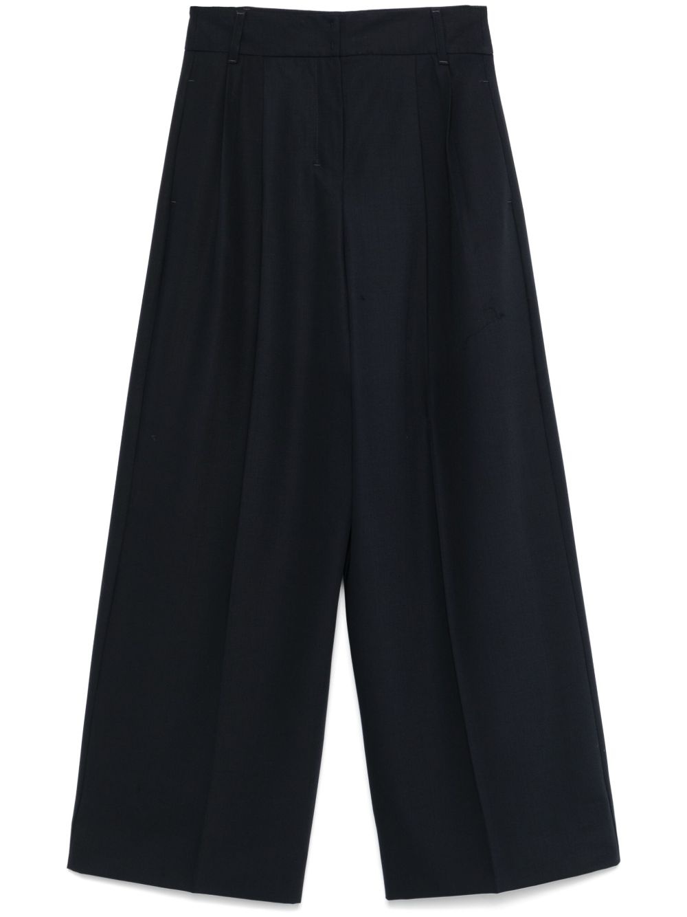wide-leg trousers Highlights - Midnight blue - Concealed front button, hook and zip fastening - Two side inset pockets - Belt loops - Pleat detailing Imported Composition Virgin Wool 100% SIZE & FIT Model measurements Height 5 ft 11 in(1.8 m) Bust/Chest 31.49 in(80 cm) Hips 36.61 in(93 cm) Waist 24.4 in(62 cm) FittingInformation Designed with a wide-leg cut, these trousers allow for a close fit at the waist and offer a loose and roomy fit over the leg Made from a midweight non-stretch fabric, this piece offers minimal elasticity when worn